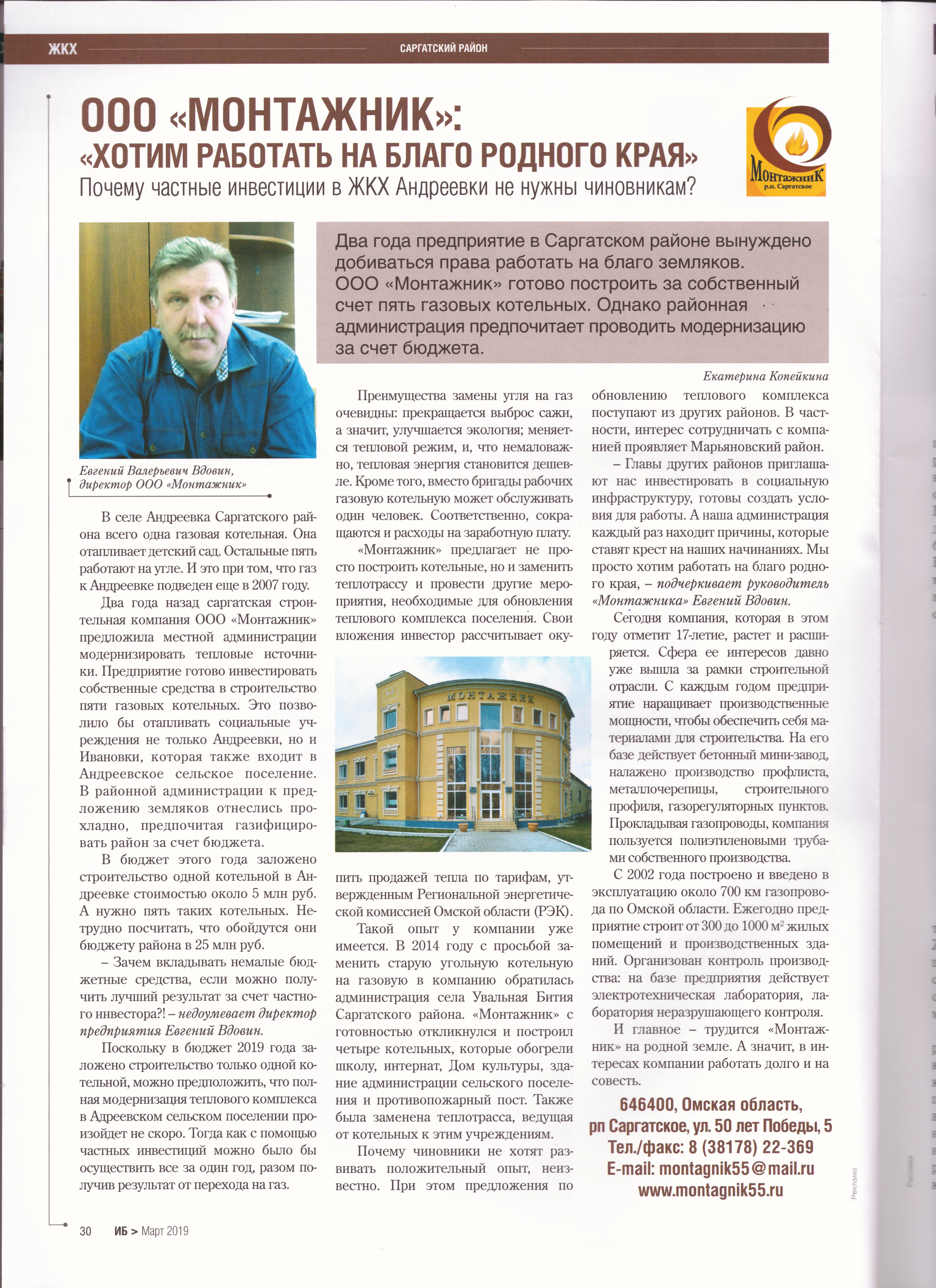 ООО "Монтажник": "Хотим работать на благо родного края"