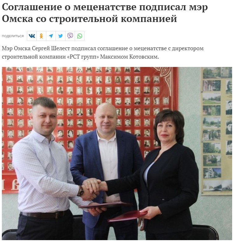 Мэр Омска Сергей Шелест подписал первое в новом году соглашение о меценатстве с ООО "РСТ-ГРУПП"