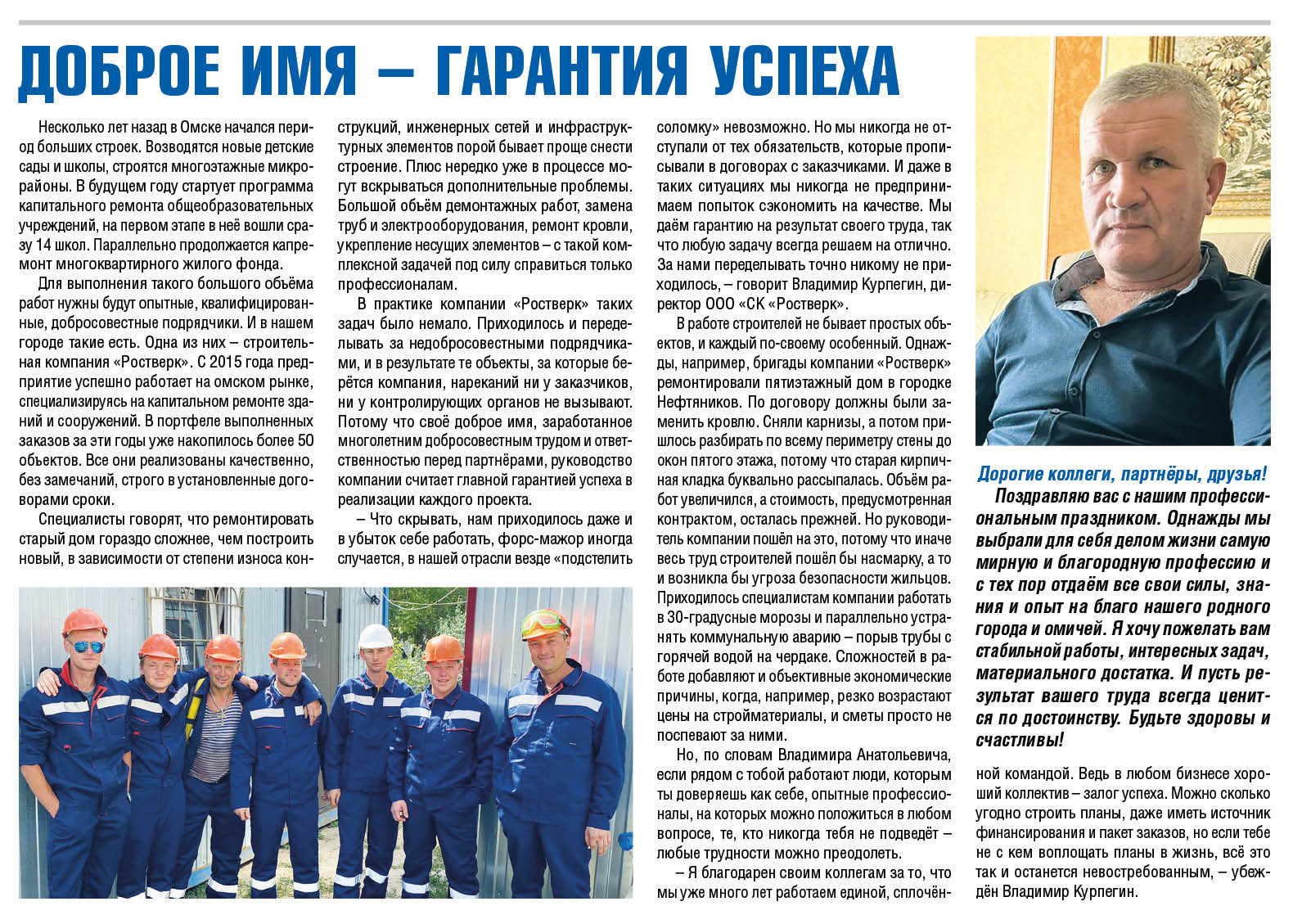 ООО "СК "Ростверк" доброе имя - гарантия успеха