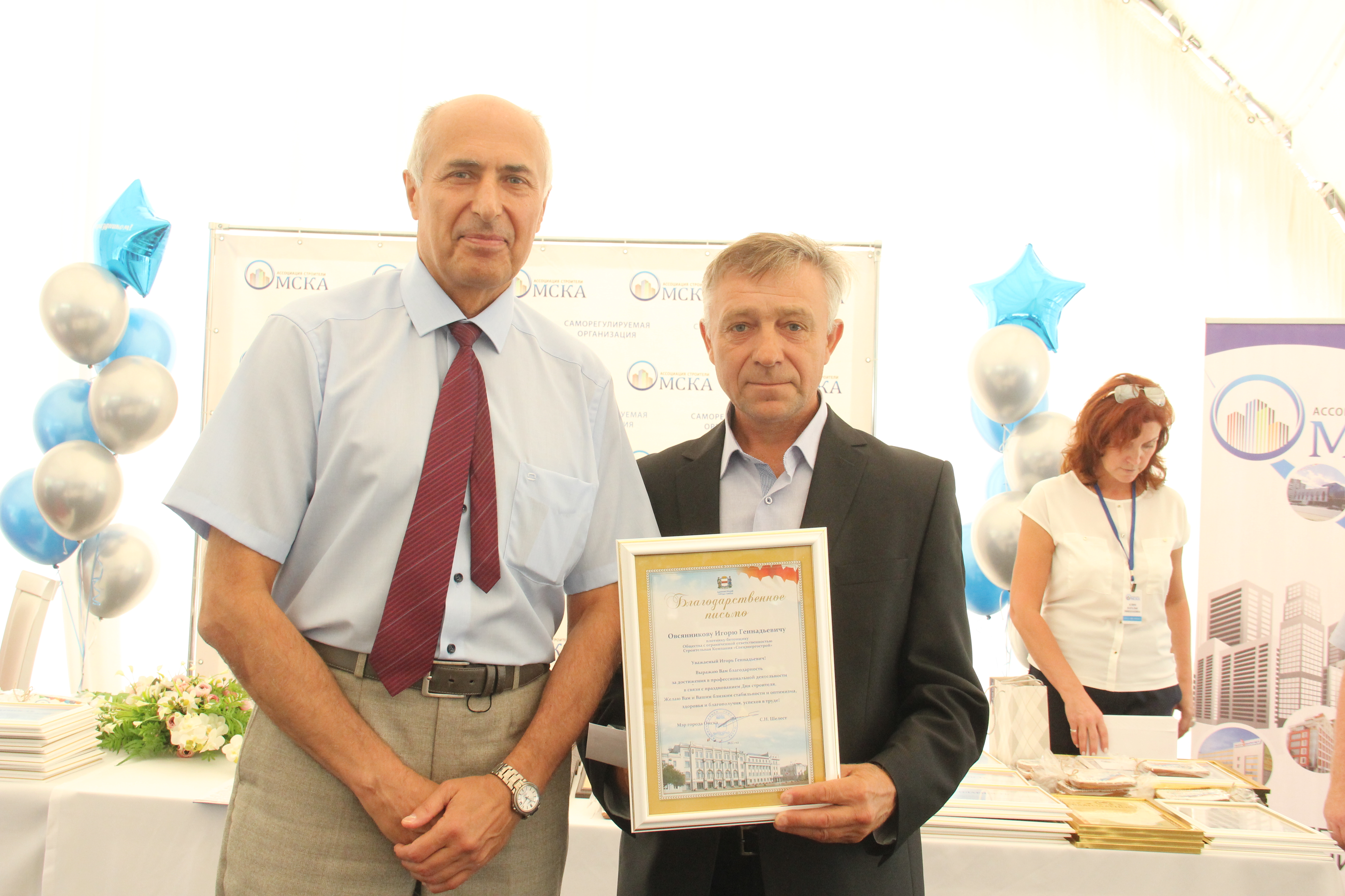 Заместитель мэра города Омска Сергей Константинович Козубович вручил благодарственные письма администрации города работникам строительных организаций.