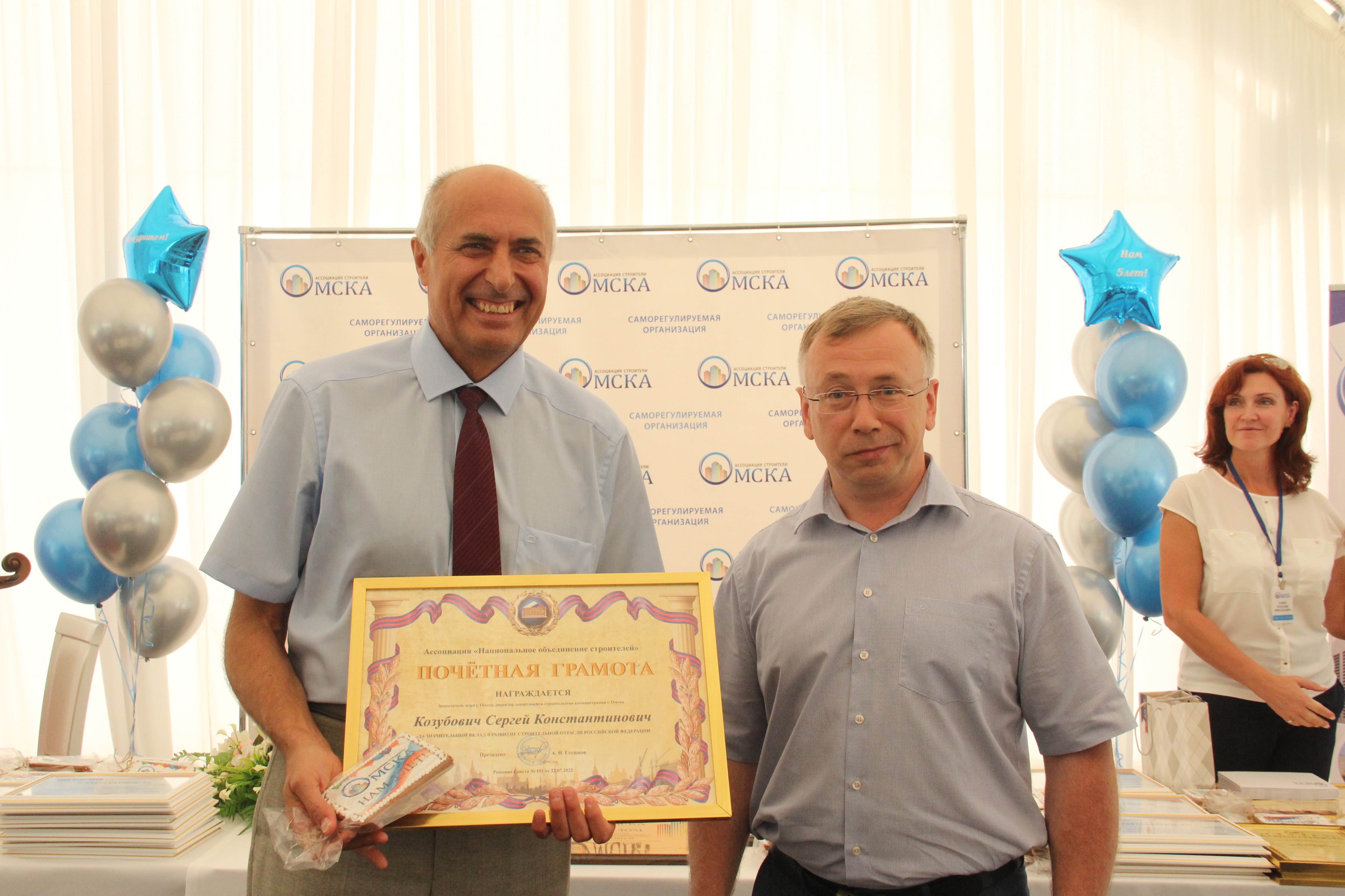 Президент Ассоциации «Строители Омска» Владимир Леонидович Гречухин вручил почетные грамоты и благодарности Национального объединения строителей.