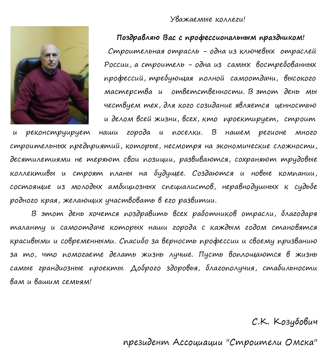 Поздравление президента Ассоциации "Строители Омска" с Днем Строителя-2023