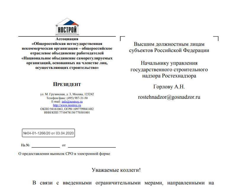 НОСТРОЙ: Не прерывать деятельность стройкомплекса