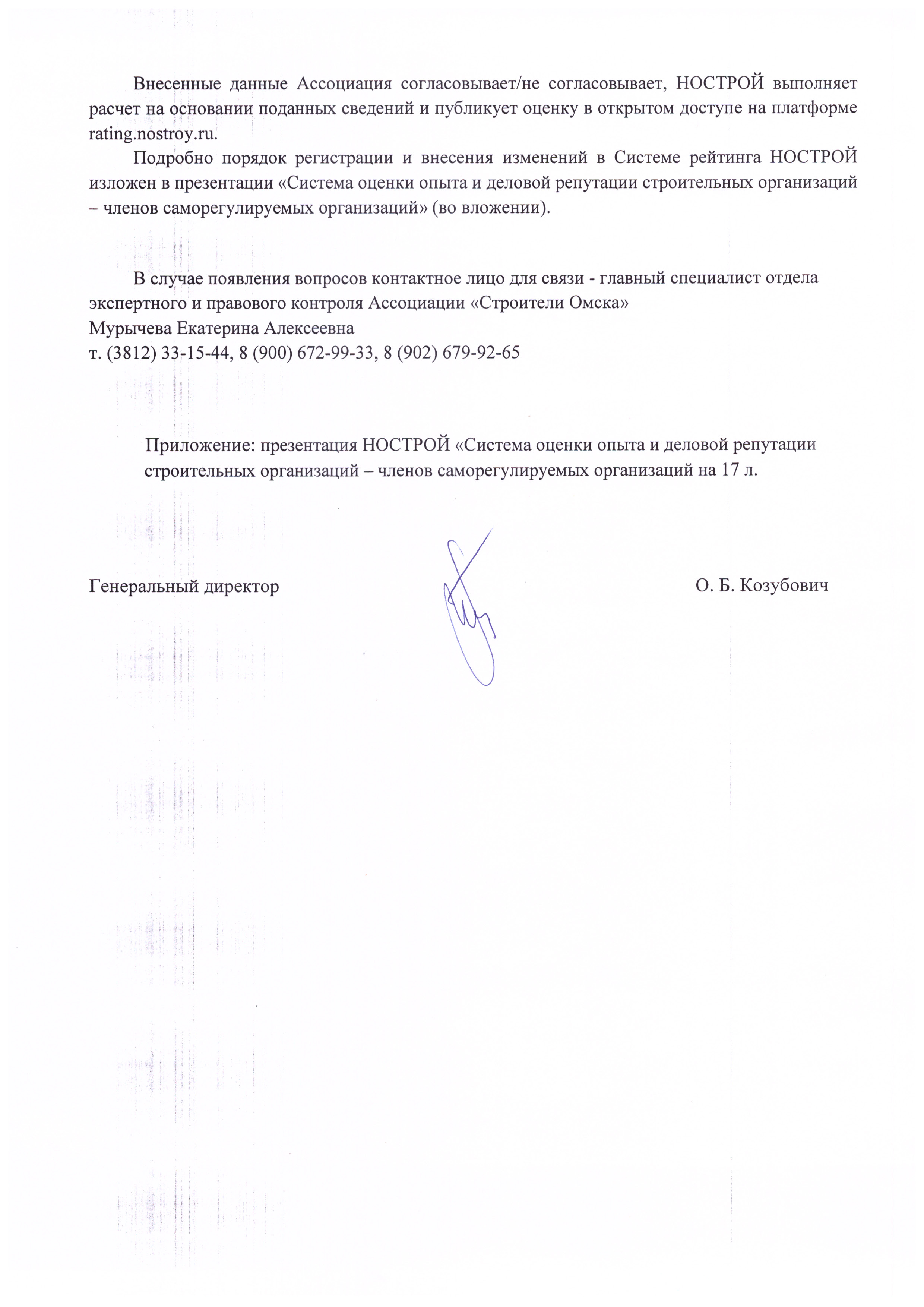 В случае появления вопросов контактное лицо для связи - главный специалист отдела экспертного и правового контроля Ассоциации «Строители Омска»