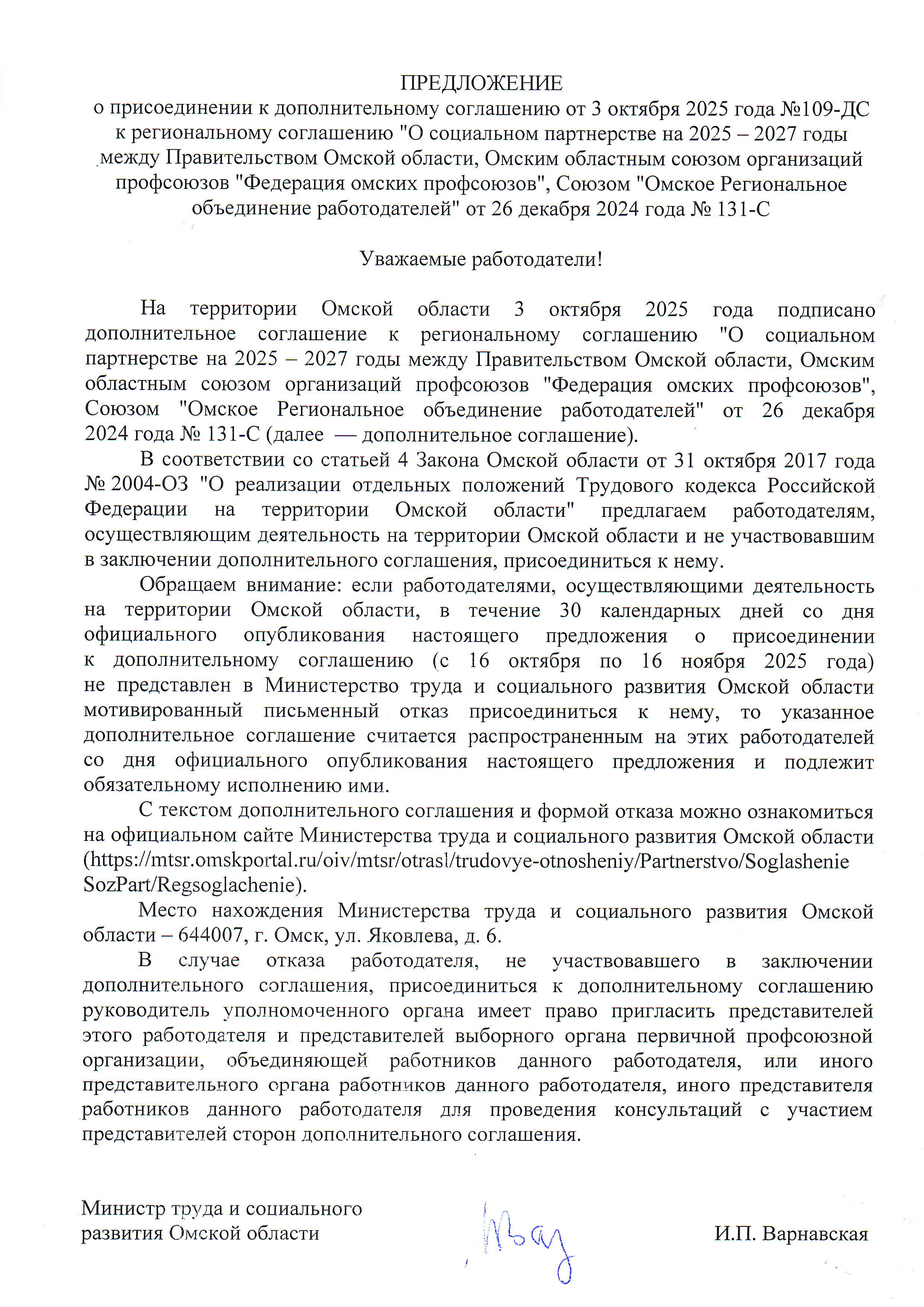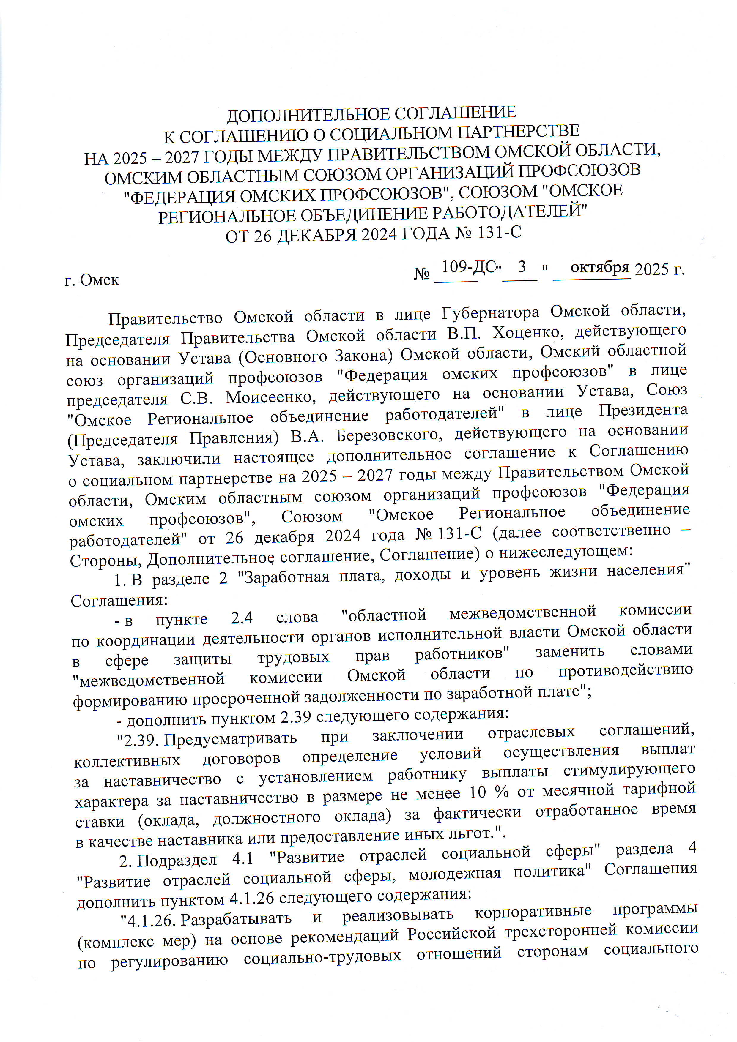 Доп. соглашение о сотрудничестве между Правительством Омской области и Омскими профсоюзами